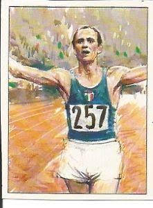 LE COSE PIU’ BELLE DUE – Ecco, continuo con le scene più belle del mio vissuto, il mio film di fine 2016. Riparto dalla immagine di Mario Ferretti (in piedi tra i Giubilo), per passare ad una “figurina” che ritrae il grande Pino Dordoni che, come Adolfo Consolini, riuscì ad essere personaggio iper-popolare dello sport ai tempi in cui Bartali e Coppi polarizzavano in modo esagerato l’immaginario collettivo ed anche il mio di fantasioso undicenne. La Scuola Nazionale di Atletica Leggera a Formia fu un altro dei miracoli di Bruno Zauli, che lì riuscì anche a fare il Sindaco: ideata nel 1953, inaugurata nel 1955, fu per decenni la Cape Canaveral dell’olimpismo italiano e tuttora recita una parte strategica importante. Infine, Roberto Roberti, di cui rammento la copertina di un suo libro sul pentathlon moderno: Roberto, generale in carriera militare, non fu soltanto un amico e un maestro, segretario generale degli “azzurri”, ma anche un grande atleta, prima calciatore dalla Fiumana alla Lazio (1938) e poi, dopo la Seconda Guerra, nazionale appunto del pentathlon moderno tra il 1950 e il ’58, gli anni magici che precedettero Roma 1960…