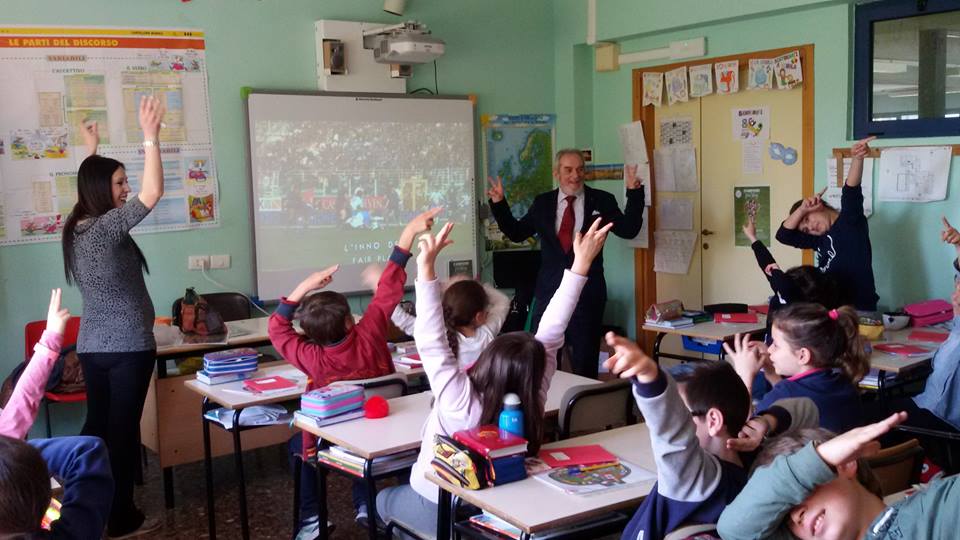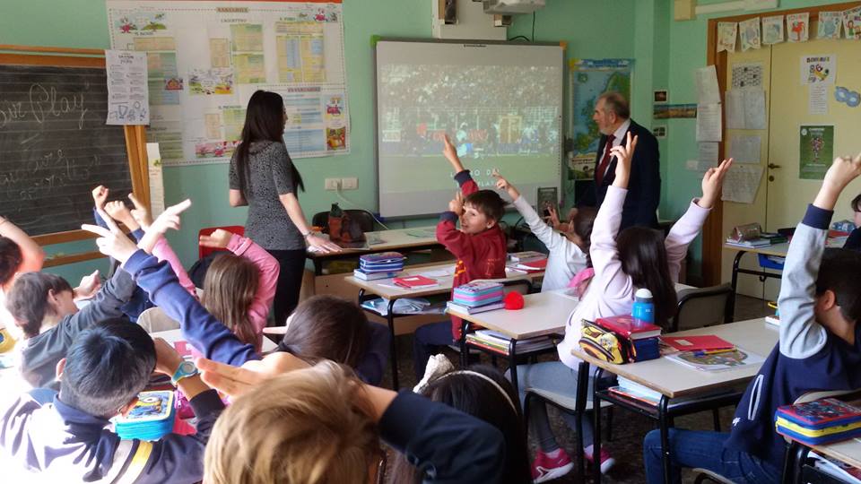 Come annunciato, ieri grande appuntamento “test” nella Primaria “Giuseppe Tosi” di Roma e grande bagno energetico con bambine e bambini che hanno dichiarato platealmente il loro amore per il tema del “Fair Play”. Dopo oltre due ore di intenso dialogo, siamo stati rilasciati dietro promessa di un ritorno entro quest’anno, quando la “Quarta” diverrà Quinta. Dopo questa fantastica esperienza – in cui ho sperimentato nel concreto la formula “Sport di Classe” proposta da CONI/MIUR/Min. Lavoro e Pol. Sociali – con la collaborazione del Comitato Nazionale italiano Fair Play, sono sempre più convinto che il nostro mondo, quello delle Associazioni Benemerite e dello Sport di Promozione/Federale/Associato debba dare una presenza mirata e costante, soprattutto dove cresce il nostro futuro. Noi del CNIFP , come premesso e promesso, continueremo a farlo comunque, con ogni mezzo. Dunque, le foto e la sintesi del test: Start up classe IV A Primaria – Scuola Plesso ” Giuseppe Tosi ” – Istituto omnicomprensivo “Indro Montanelli ” di Roma – … “Classe proattiva, ricettiva e curiosa oltre ogni più rosea aspettativa: 23 teste pensanti e molto propositive!!!