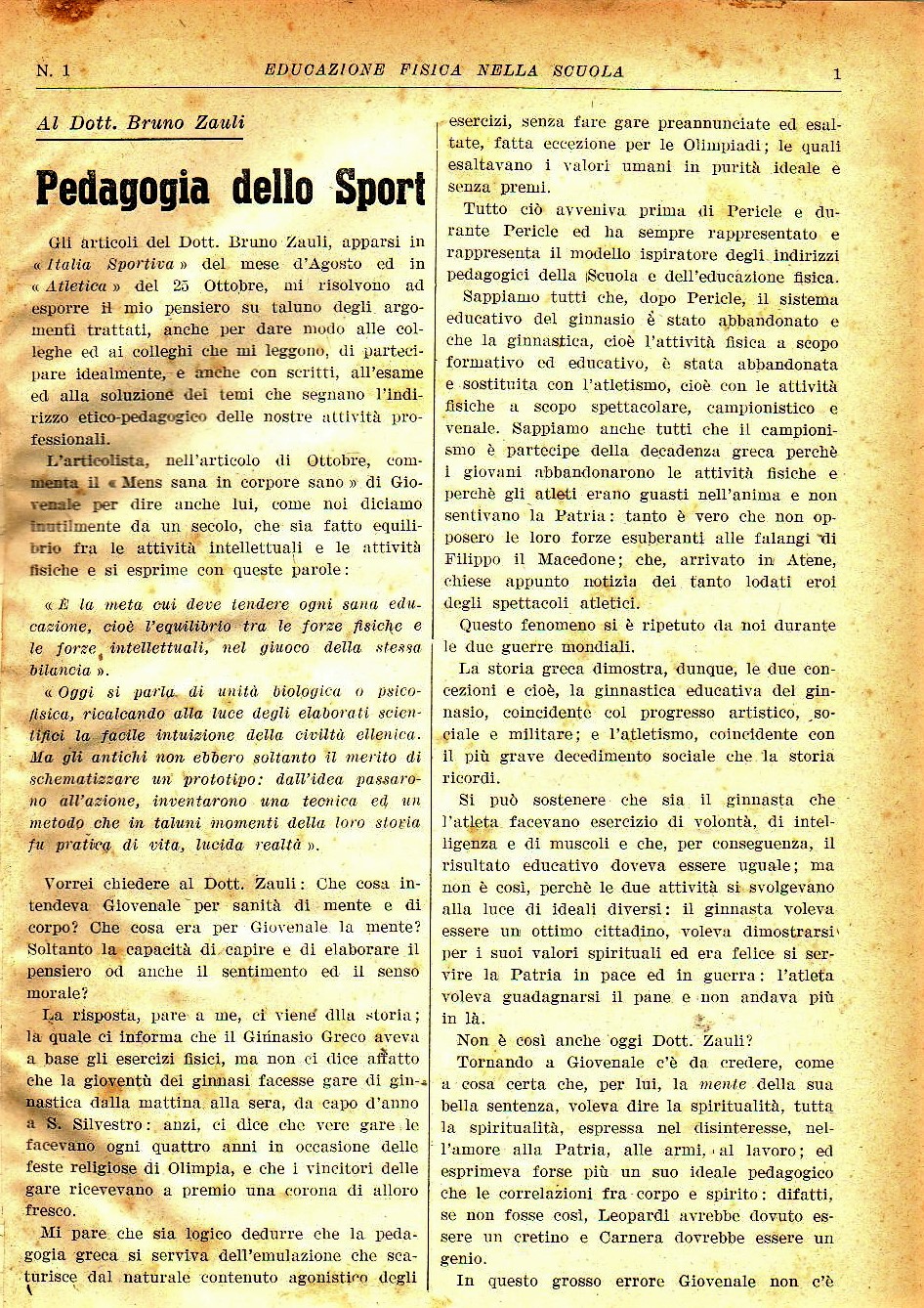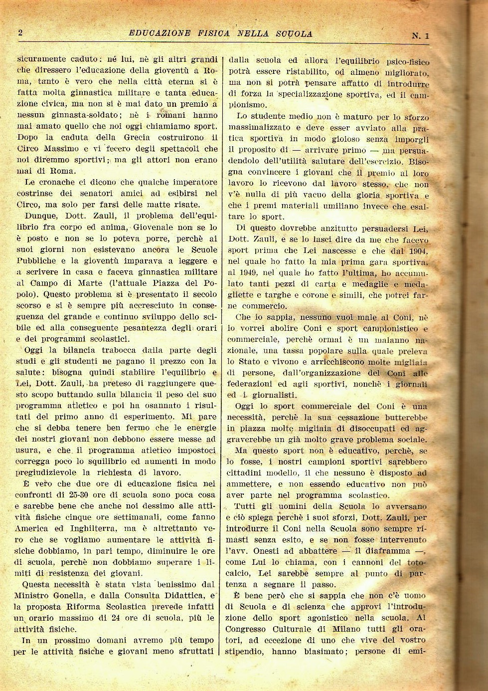 AL CONI, TEMPO DI ELEZIONI – SPORT E SCUOLA, ZAULI E MAZZAROCCHI – Mancano due giorni alle assemblee convocate per definire la formazione del Consiglio Nazionale del CONI che, l’ 11 di maggio eleggerà i vertici dell’Ente, di cui Giovanni Malagò sarà Presidente con un secondo mandato. Io ritengo che sia questa l’occasione unica irripetibile per dare allo sport in Italia ruolo funzionale alla crescita, più simile a quello che occorre per dare qualità alla vita e per aumentare il prodotto interno lordo, piuttosto che il numero delle medaglie ai prossimi Giochi Olimpici. Anche le Associazioni Benemerite potrebbero avere una funzione strategica, ma molto dipende dalla loro consapevolezza del ruolo possibile, dei valori che rappresentano, degli obiettivi condividibili, se riuscissero a raggiungere un livello di coesione adeguato. Posso fare l’esempio della necessità di presenza nel mondo della scuola e in particolare delle Primarie, dove le classi sono cinquantottomila e i bambini un milione e mezzo, dove si dovrebbe poter operare con una mobilitazione permanente, collaborando con l’apparato didattico, utilizzando le risorse dei bandi PON . Comunque, soltanto con una seria riforma, che riguardasse la qualità dell’insegnamento e il ruolo dei laureati in scienze motorie, si potrebbe trovare una vera quadratura del cerchio. A conferma di ciò, basta leggere quello che scriveva il prof. Serafino Mazzarocchi, nel 1952, sul N.1 di Educazione Fisica. in piena rotta di collisione con il nostro amato Zauli: una diaspora dal sapore culturale, ma anche sindacale, che non si è mai sanata e che spiega il crollo dello sport nella scuola, una volta spariti i suoi storici mentori al Foro Italico. Per quanto riguarda le Secondarie, stessa prospettiva ma con discenti meno plasmabili. Domani, a parlare di fair play, nello storico Liceo Virgilio di Via Giulia, in Roma, ci saremo io e Daniele Masala, oltre ad un manipolo di personaggi impegnati sui temi dell’etica e lo sport, tra cui il marciatore delle Fiamme Gialle Marco De Luca e l’azzurra dell’atletica Rita Bottiglieri. Si tratterà di una bella occasione d’incontro, di un test, ma poco più di una goccia nel mare magnum delle occasioni eluse e delle generazioni tradite. Ecco, perché molti rimangono scettici rispetto agli annunci ed alla sottoscrizione di protocolli con il Ministri dell’Istruzione di turno. Continuo a pensare che la partita dello sport nel Bel Paese si gioca proprio avendo cura degli adolescenti, diversamente, sul podio della salute non si salirà mai !
