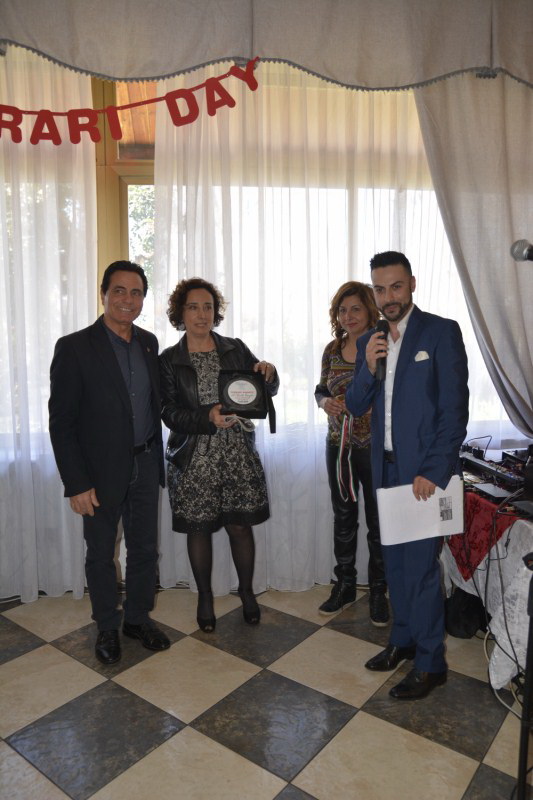 Ad allietare l’atmosfera durante il pranzo, riservato a ferraristi, premiati ed ospiti, anche la voce di Alessandro La Cava, (concorrente “Io Canto, ed anche gia’ Premio Mogol, dal prezioso e lungo curriculum con collaborazioni anche internazionali).