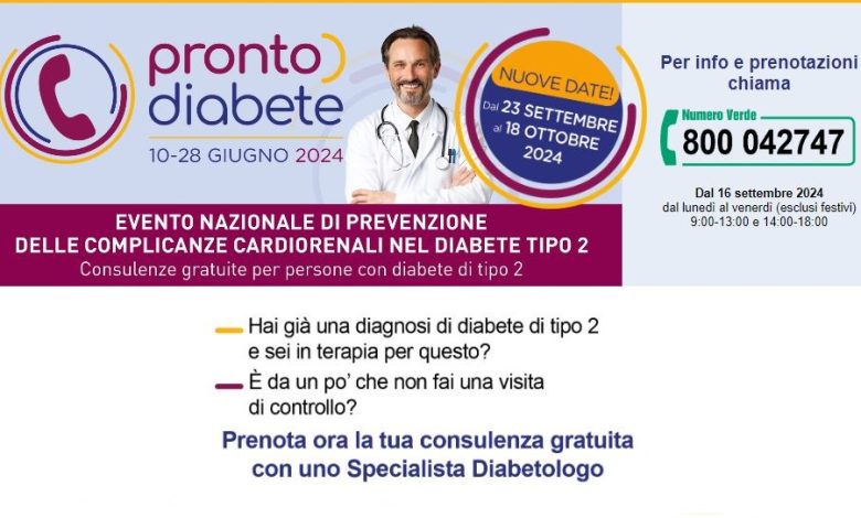 MILANO (ITALPRESS) – Riprende Pronto Diabete, la campagna nazionale che, dal 23 settembre al 18 ottobre, mette a disposizione dei pazienti con Diabete Mellito di tipo 2 consulenze specialistiche gratuite con un diabetologo presso i centri specializzati in tutta Italia, prenotabili al Numero Verde 800 042747. Attivo anche il sito www.prontoDiabete.it.
