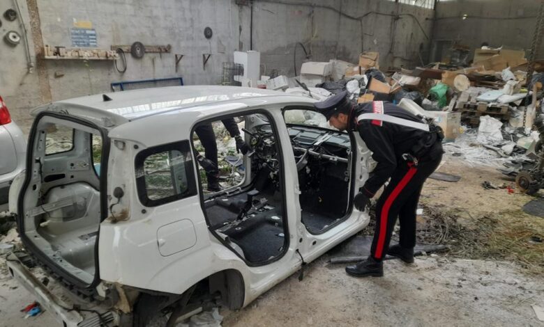 Sul posto, i Carabinieri hanno bloccato i due uomini, ed hanno effettuato una perquisizione del capannone. All’interno dei locali, i militari hanno rinvenuto e sequestrato quattro carcasse di Fiat Panda, tutte risultate oggetto di furto e con parti meccaniche e di carrozzeria mancanti.