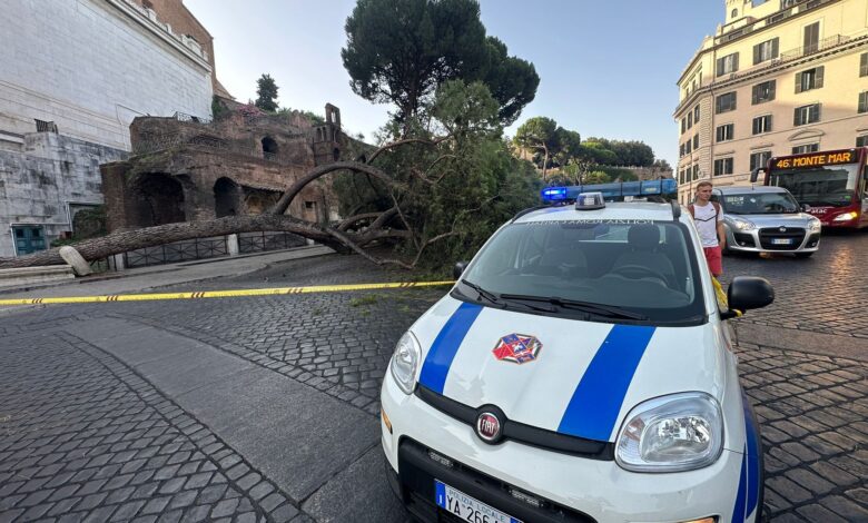 Roma: cedono le radici, grosso pino cade in piazza dell’Aracoeli