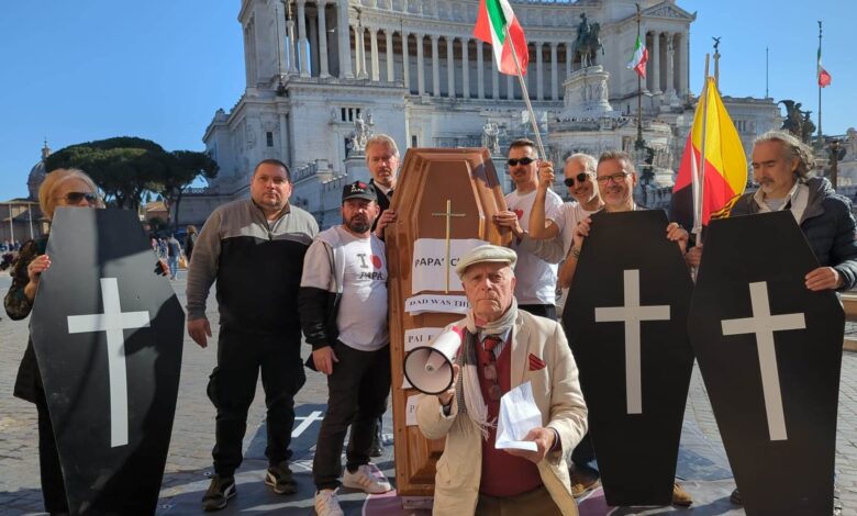 Con una vera bara in spalla, cartelli con i cuori infranti e striscioni in tutte le lingue con scritto: “Papà c’era” tanti papà hanno marciato per il centro celebrando un finto funerale, chiedendo “rispetto” ma soprattutto “più giustizia” per le tante vittime che si sono tolte la vita in tutti questi anni.