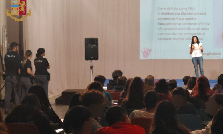 Nell’ambito del Progetto “Scuole Sicure” della Questura di Roma, anche quest’anno, il Commissariato Colombo ha coinvolto l’Associazione Onlus “FarexBene” in un’azione comune volta alla sensibilizzazione e prevenzione del Body Shaming, del Bullismo e Cyber bullismo. Nella giornata di mercoledì, presso l’Istituto di Istruzione Superiore Statale “Cine e TV Roberto Rossellini” si è tenuto l’incontro condiviso dal titolo “Voci di Spogliatoio”, con la partecipazione dei Dirigenti Scolastici, dei Professori e di circa 300 studenti delle classi prime, in presenza e in collegamento da remoto con la succursale. Presenti all’evento personale del Commissariato Colombo, il Direttore Generale dell’Associazione Onlus “FarexBene” e con la Campionessa Italiana, disciplina Karate, Sara Cardine, la quale, dopo aver rappresentato il suo trascorso da “bullizzata”, ha piacevolmente coinvolto gli studenti in una dimostrazione pratica di karate. In particolare, si è voluto trasmettere ai giovani studenti il messaggio formativo “lo sport è bello e fare squadra aiuta sempre”, in modo da sollecitare tutti al rispetto dell’altro, valorizzando capacità e attitudini di ciascuno, nell’assunto che il lavoro di squadra costituisce un moltiplicatore delle potenzialità del singolo e rafforza il livello di autostima.