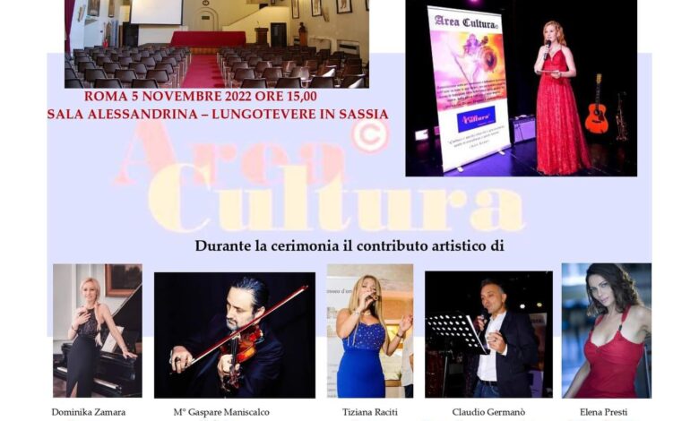 Il 5 novembre dalle ore 15 alla Sala Alessandrina di Roma – Complesso Monumentale S. Spirito in SassiaMuseo dell’Arte Sanitaria, ci sarà la cerimonia di premiazione del Premio Letterario “Il libro dell’anno 2022″ e del Concorso letterario “La poesia dell’anno 2022 di Area Cultura.