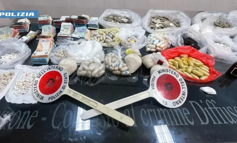 Sono stati rinvenuti e posti in sequestro circa 3,5 chilogrammi di eroina ed un chilogrammo di cocaina, purissimi. Parte dello stupefacente era già confezionato e racchiuso in centinaia di ovuli dal peso diversificato. Rinvenuto e sequestrato, inoltre, tutto l’occorrente per la lavorazione come sacchetti in cellophane, frullatori, coltelli, cucchiai piatti e bilancini di precisione, nonchè la somma di quasi sessantamila euro e ben 12 telefoni cellulari. Contestualmente all’accesso nell’appartamento, ritenendo probabile che uno dei due fermati, il nigeriano sorpreso, inseguito e bloccato su strada, avesse ingerito ovuli di stupefacente, si è ritenuto di sottoporlo ad opportuni esami diagnostici che hanno riscontrato il sospetto.