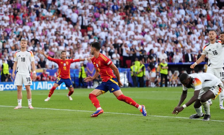 Nella ripresa dopo 2′ Morata si gira benissimo in area ma alza troppo la mira. La Spagna passa al 7′ quando Yamal scende a destra e crossa in mezzo all’area dove Olmo, in diagonale, impallina di precisione Neuer. La Germania si getta all’assalto senza remore. Al 25′ destro di Andrich, Unai Simòn respinge la minaccia. Subito dopo Carvajal intercetta la conclusione di Havertz quindi è Fùllkrug, di testa, a non avere fortuna. I tedeschi divorano il pareggio in due occasioni. La prima al 32′ quando Wirtz serve Fùllkrug che anticipa Nacho e prende in pieno il palo. La Spagna si salva al 37′ quando Havertz, tutto solo, fallisce il pallonetto dopo un errore del portiere spagnolo nel rinvio. Ultimi minuti di pura sofferenza per gli spagnoli. La Germania pianta le tende nella metà campo avversaria ed al 44′ trova il pareggio con una sponda di Kimmich per la girata di Wirtz. Nel recupero Muller divora il 2-1. Nel primo tempo supplementare gran sinistro da fuori di Oyarzabal che si spegne di poco a lato del palo alla destra di Neuer (14′). Nel secondo overtime, sul tiro dal limite di Musiala la respinta col braccio di Cucurella, in piena area di rigore, è netta. Taylor non fischia, il Var tace tra le proteste dei tedeschi. Dopo il no di Unai Simon su Fullkrug, allo scadere del recupero Merino, di testa, dà la qualificazione alla Spagna.