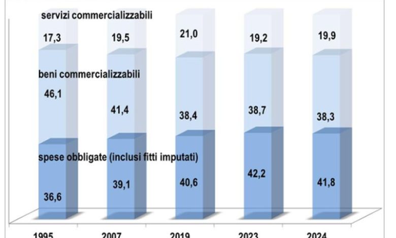 Questi, in sintesi, i principali risultati che emergono da un’analisi dell’Ufficio Studi di Confcommercio sulle spese obbligate delle famiglie italiane tra il 1995 e il 2024.