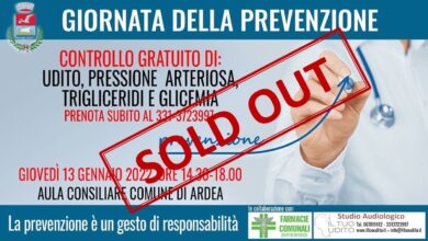 Il Comune di Ardea informa di aver raggiunto il massimo delle prenotazioni per la giornata di prevenzione che si svolgerà…