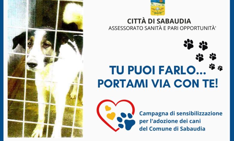 Adotta un amico a 4 zampe, saprà essere riconoscente per tutta la vita. “Tu puoi farlo… Portami via con te!” È la campagna di sensibilizzazione del Comune di Sabaudia per l’adozione dei cani.