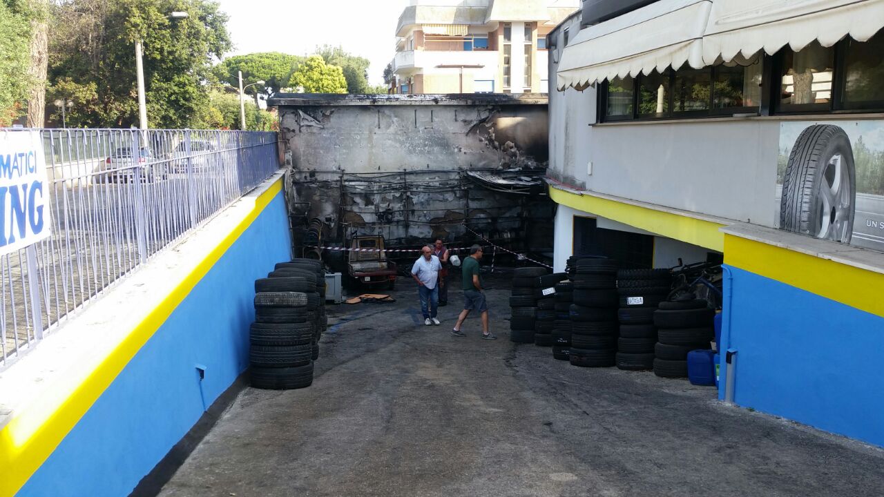 ULTIMORA . Lavinio Mare . Dopo lo spegnimento dell’incendio sviluppatosi questa mattina ai danni del gommista di Viale Re Latino, l’area del rogo è sotto sequestro per sospetto dolo