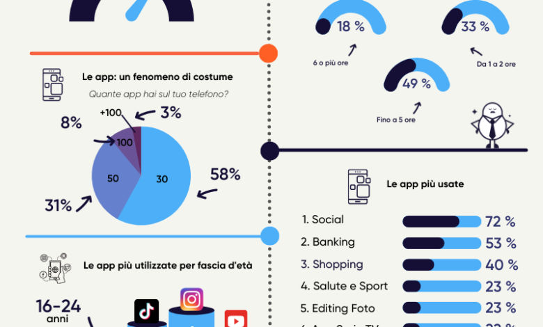 A ricoprire un ruolo chiave nello sviluppo del rapporto con il nostro smartphone sono state sicuramente le app, che negli anni hanno trasformato il nostro telefono nel compagno ideale per ogni situazione, in grado di rispondere a tutte le nostre esigenze. Dai social media alla varie app di messaggistica istantanea, lo smartphone ad oggi è a tutti gli effetti lo strumento principale per mantenere i rapporti interpersonali, poiché permette di condividere vari aspetti della propria vita, rimanendo sempre in contatto con amici, parenti e colleghi. Non stupisce allora che, in media, ogni individuo indifferentemente dalla fascia d’età colleziona almeno 30 applicazioni differenti sul proprio telefono.