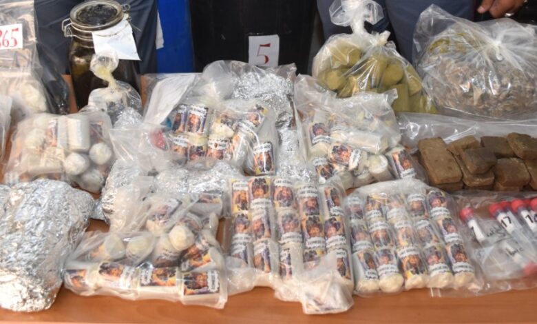 Le  successive analisi, effettuate al momento solo su una parte di sostanza rinvenuta, hanno evidenziato che, oltre a cannabinoidi, 22 involucri – dei 124 cilindri complessivamente sequestrati –  risultavano contenere ben 65.324 dosi medie singole di hashish. Durante le attività, sono state sequestrate inoltre, numerose attrezzature tra cui bilance ed una macchina per il sottovuoto.