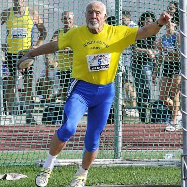 CARMELO RADO (Oderzo, 4 agosto 1933) A 27 anni, ha preso parte alla gara di lancio del disco, classificandosi settimo con la misura di m. 54,00 m. Nel 1961 si è laureato campione italiano del lancio del disco con m. 52,72 e l’anno successivo si classificò ottavo ai campionati europei di Belgrado con m. 52,82. 21 volte in nazionale tra il 1956 e il 1965, il suo record personale lo ha raggiunto nel 1969 con un lancio di m. 58,45. Con l’Olimpia Amatori Rimini, ha continuato a praticare l’attività agonistica senza soluzione di continuità, andando poi a conquistare cinque record del mondo per le categorie master in tre diverse discipline: Lancio del disco